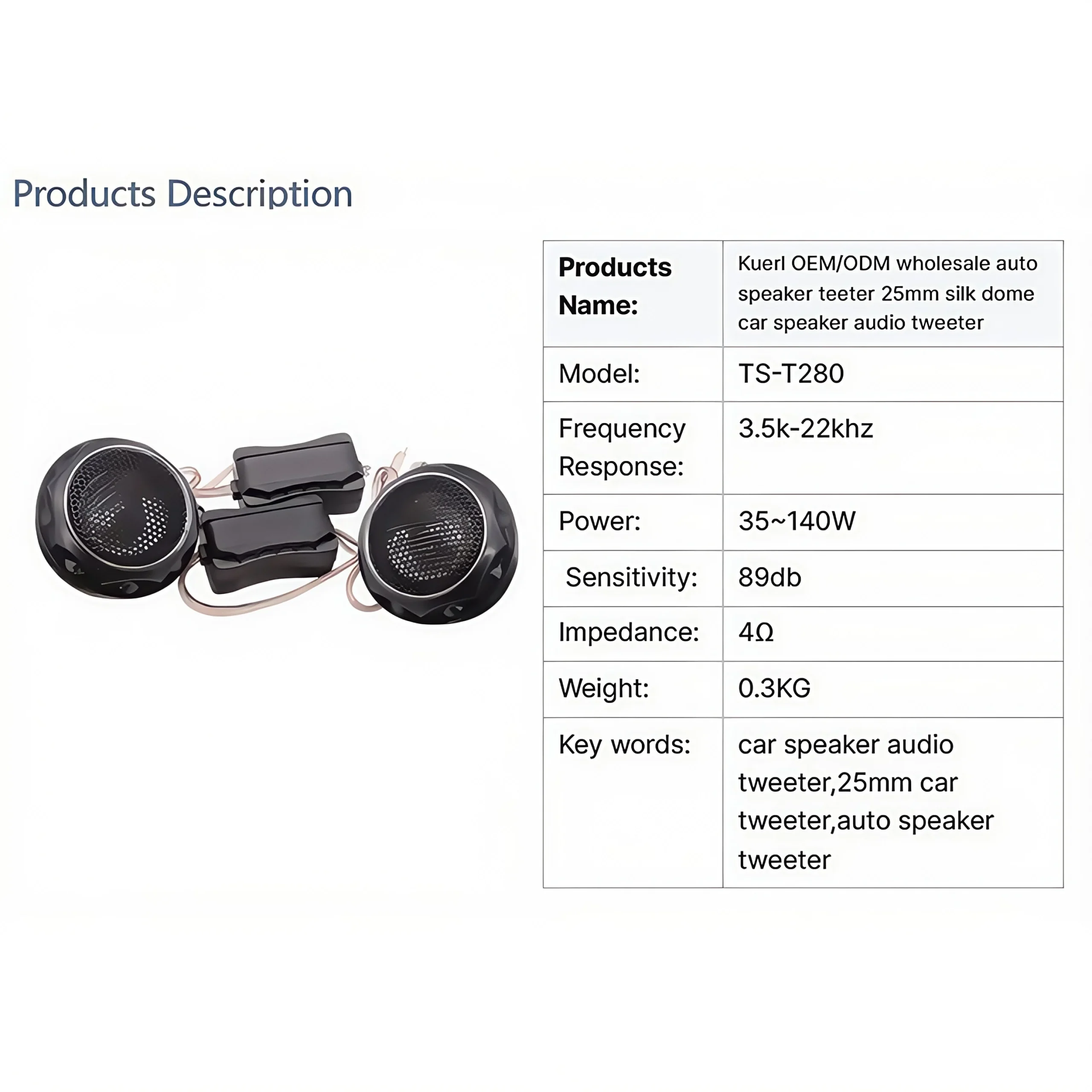 En Zona Tendencias sabemos que la potencia no lo es todo; la claridad es lo que hace la diferencia. Los tweeters TS-T280 están fabricados con una cúpula de seda y un imán de neodimio, lo que permite reproducir las frecuencias altas de forma natural y cálida, sin ese sonido chillón o metálico de los modelos económicos. Con un rango que alcanza los 22kHz, escucharás instrumentos que antes pasaban desapercibidos.