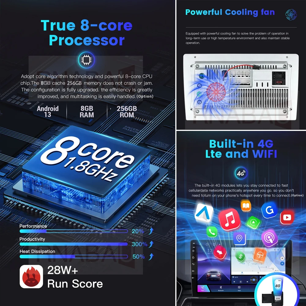 Disfruta de una experiencia visual inigualable con la pantalla de 10.1 pulgadas QLED de ultra alta definición (2K – 2000×1200). Este centro multimedia no solo es una radio; es una computadora de alto rendimiento para tu vehículo, equipada con 8GB de RAM y el potente procesador 8-Core 7862, garantizando una fluidez absoluta en aplicaciones como Google Maps, Netflix o Spotify.