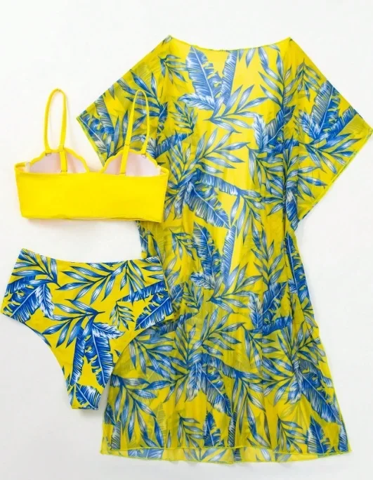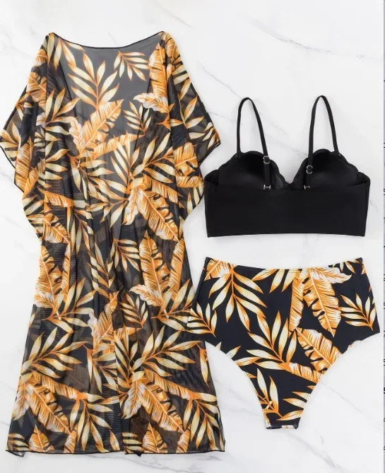 El estampado de hojas (Leaf Print) ha sido creado mediante técnicas de impresión digital de alta fidelidad. Esto asegura que el patrón tropical se mantenga impecable, vibrante y sin decoloración, incluso bajo la exposición constante al sol intenso o al salitre del mar. Cada una de las partes que componen este artículo ha sido diseñada para trabajar en armonía, permitiéndote lucir un look cohesivo y profesional sin el esfuerzo de tener que combinar accesorios por separado. La armonía entre el Bikini y su complemento de malla es lo que define el éxito de este diseño Cross-Border.