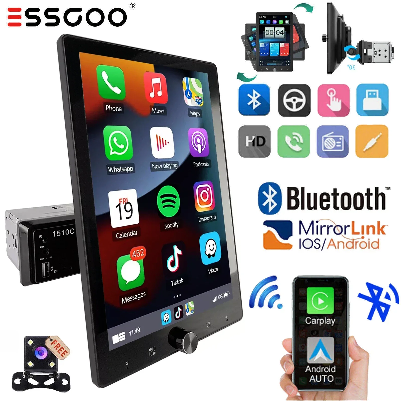 En Zona Tendencias te traemos el reproductor MP5 Premium definitivo para espacios reducidos. Con una impresionante pantalla de 10.4 pulgadas IPS, este equipo ofrece una visibilidad perfecta desde cualquier ángulo. Lo mejor: su sistema es Rotatorio (90° hacia la izquierda), lo que te permite ajustarlo para no tapar los controles de tu tablero.