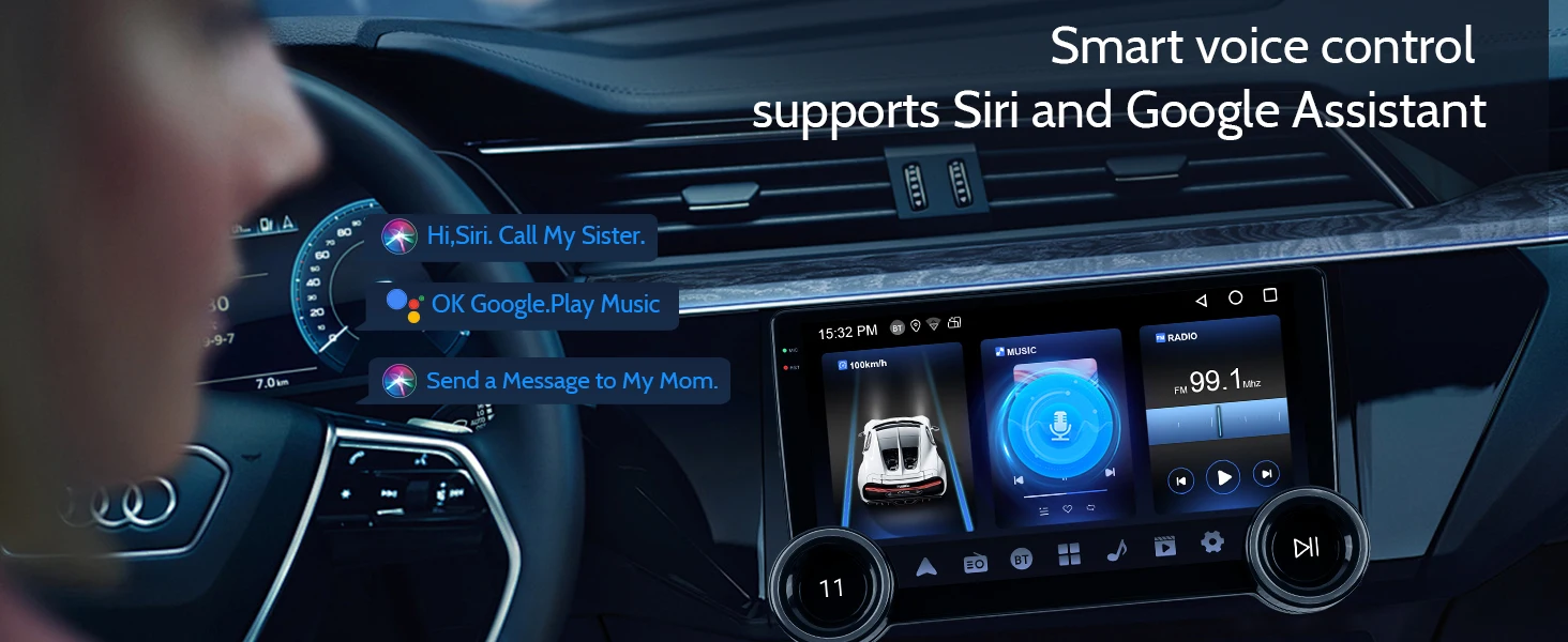 Control por Voz: Maneja las funciones principales sin soltar el volante, aumentando tu seguridad.