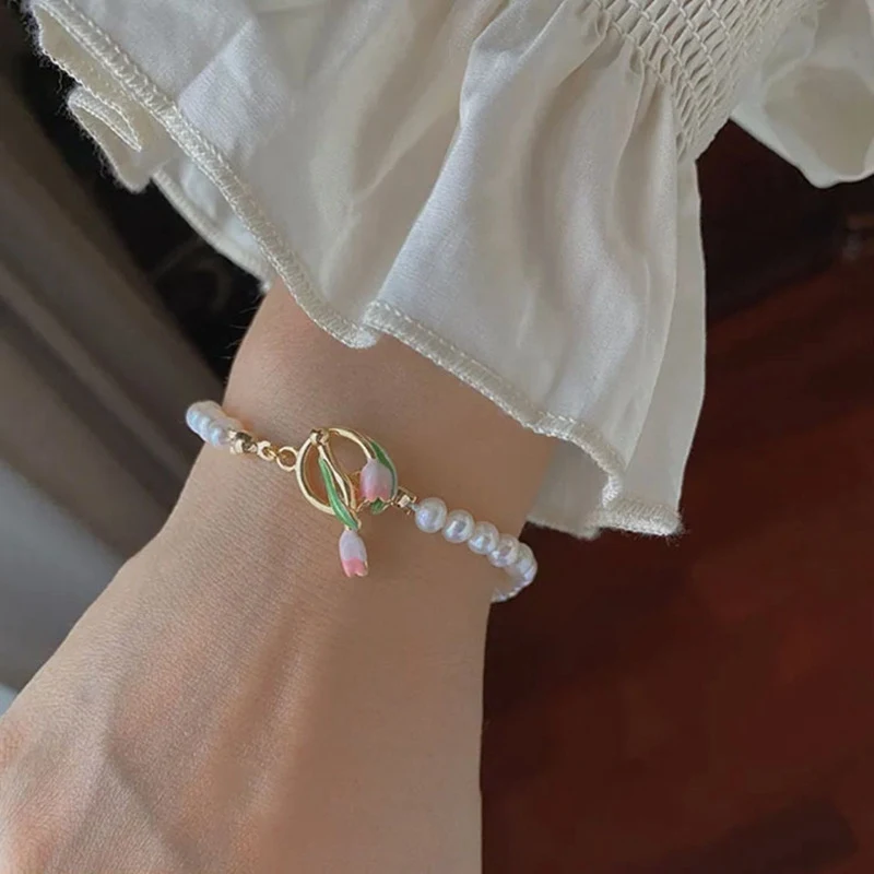 Este accesorio de estilo coreano es la pieza definitiva para quienes buscan un complemento que combine la delicadeza floral con el brillo del lujo moderno. El diseño, protagonizado por un tulipán detallado, ha sido creado para la mujer que desea una joya sutil pero de gran impacto visual, capaz de elevar cualquier atuendo, desde un look diario hasta un vestido de noche. Inspirada en la estética romántica de Seúl, esta pulsera de flores integra materiales premium como circones, ópalo y perlas.
