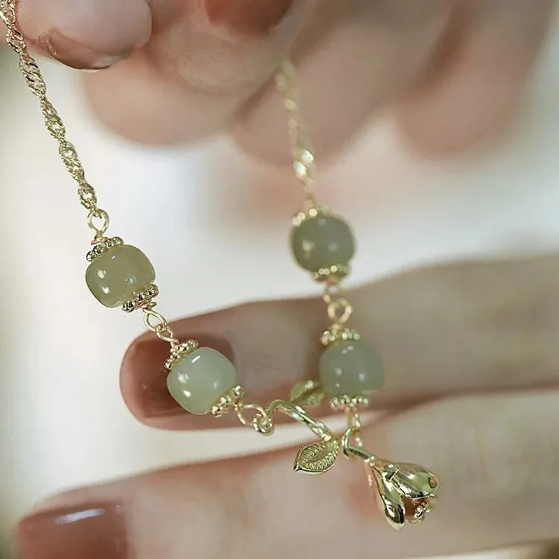 El elemento que define a esta joya es su patrón botánico, una estética que evoca la sofisticación de la pulsera de flores que domina las tendencias actuales. El dije central incorpora un tulipán adornado con circones de alta calidad que capturan la luz de manera espectacular. Además, la cadena alterna delicadas cuentas de perlas y ópalo, creando una textura visual rica que hace que este accesorio sea único en su clase.