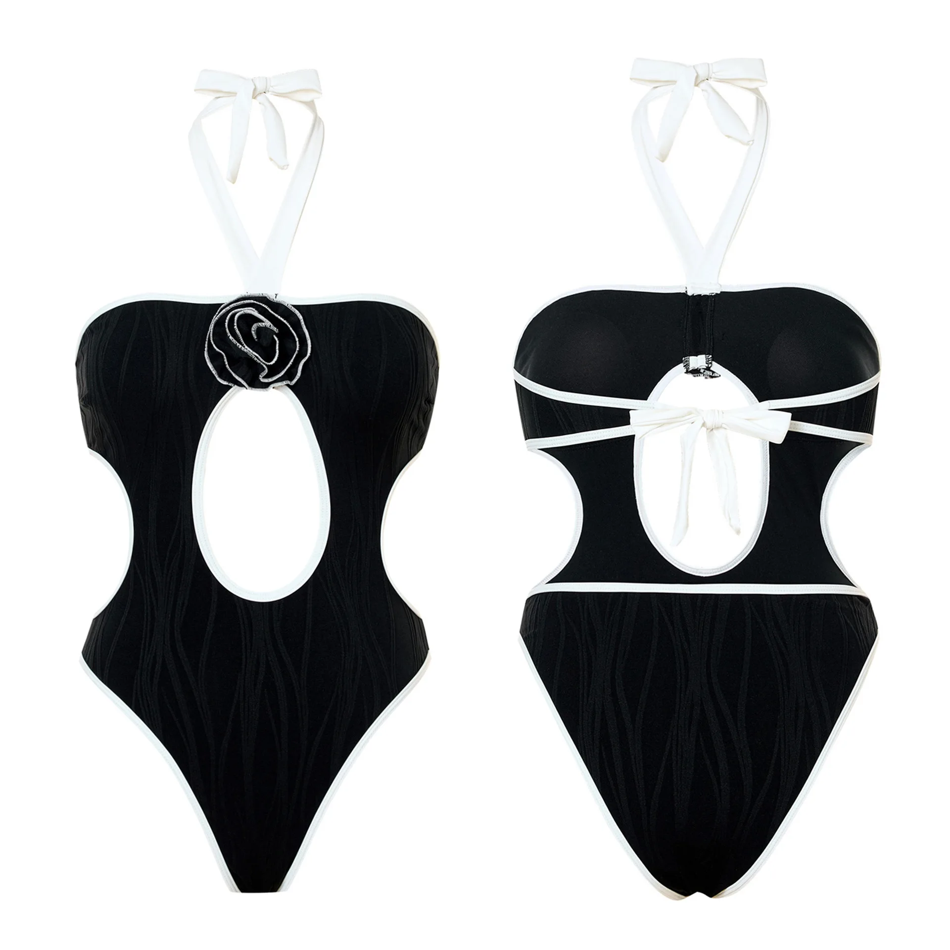 La estructura de este atuendo de 1 pieza cuenta con un cuello tipo halter (cuello colgante) y una espalda totalmente descubierta, lo que lo convierte en la opción ideal para eventos exclusivos en resorts o fiestas privadas. La decoración central no es solo un adorno superficial; es una pieza de artesanía textil que aporta volumen y una estética digna de las pasarelas internacionales a tu estilismo veraniego. Es, en esencia, la evolución de la moda acuática clásica hacia un concepto mucho más artístico y exclusivo.